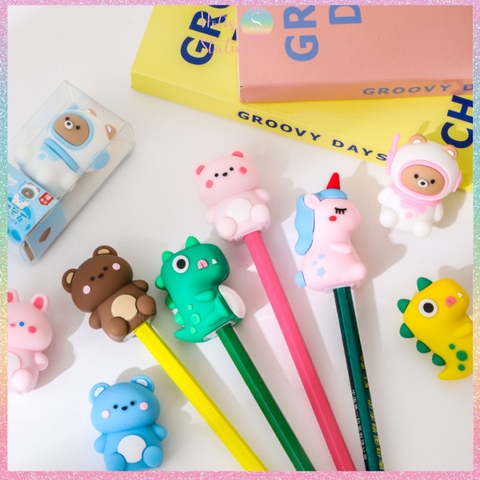 Chuốt chì hoạt hình silicon 3D ngộ nghĩnh, đồ gọt bút chì hình thú dễ thương - Tặng kèm gôm tẩy chì 4B