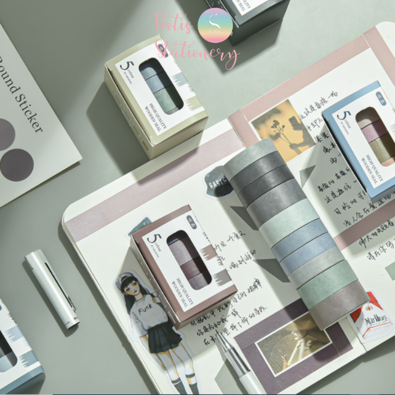 Hộp 5 cuộn washi tape màu trơn dài 2m
