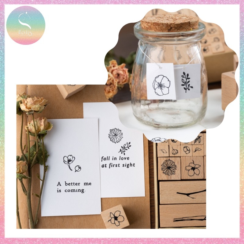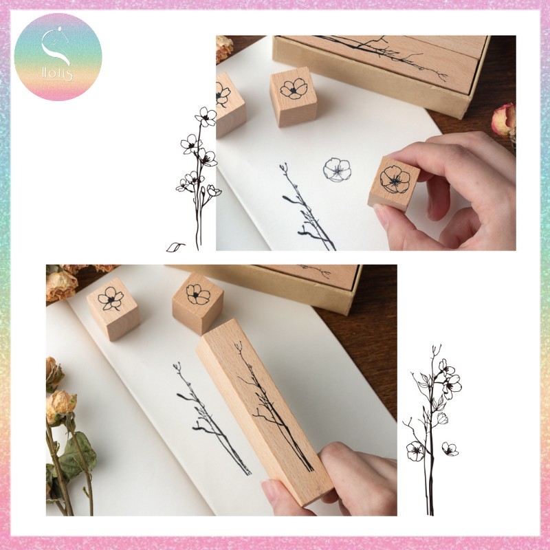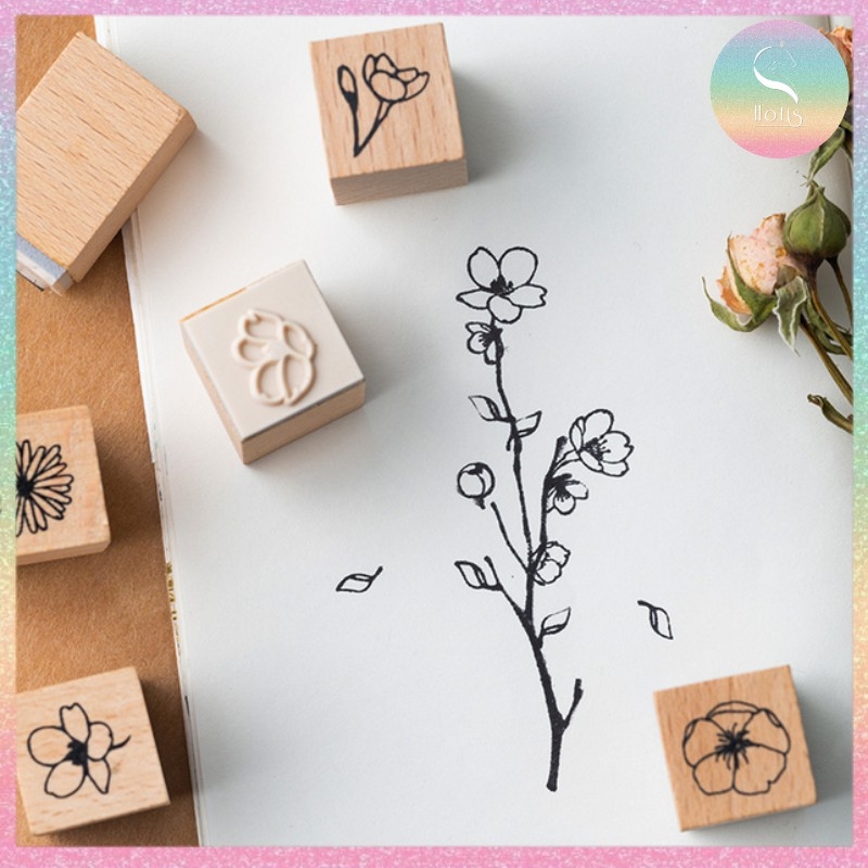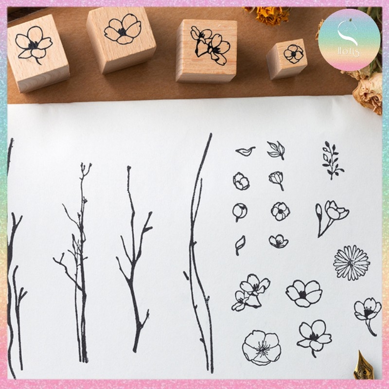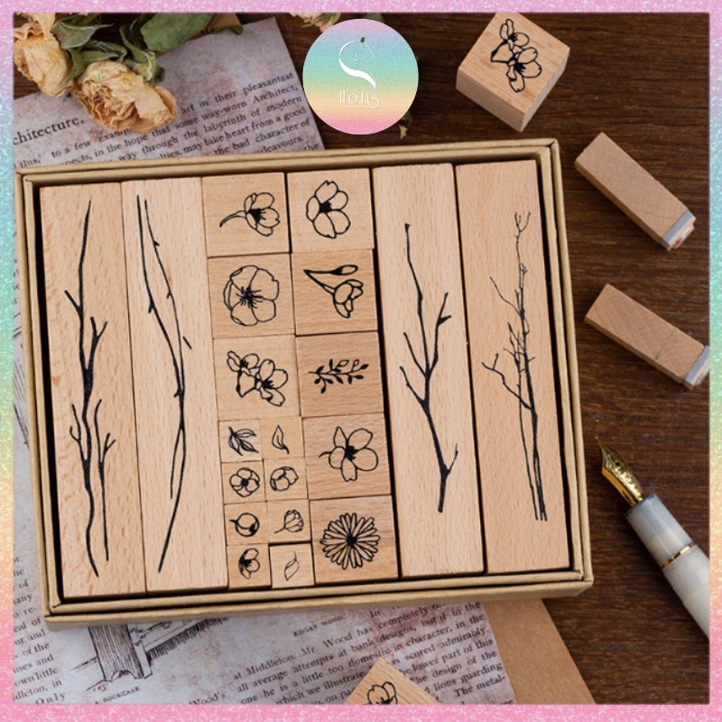 [HOTIS] Bộ 20 con dấu gỗ kết hợp hoa lá cành - Combination Seal