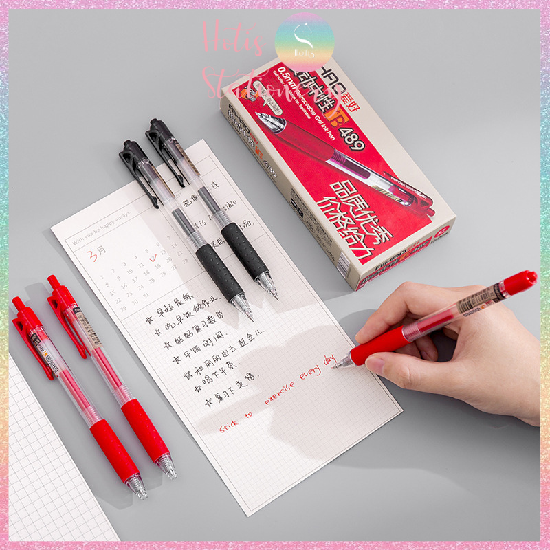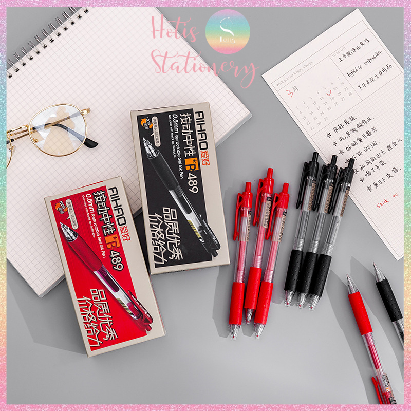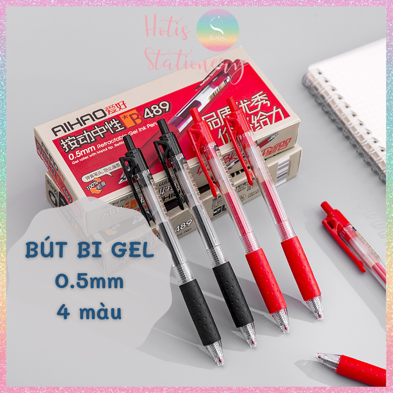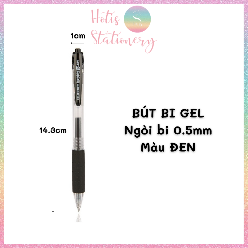 - Bút bi bấm, mực gel, ngòi bi 0.5mm