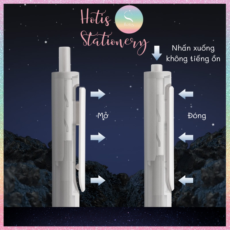 - Thiết kế đầu bấm chống ồn, không phát ra tiếng khi bấm bút