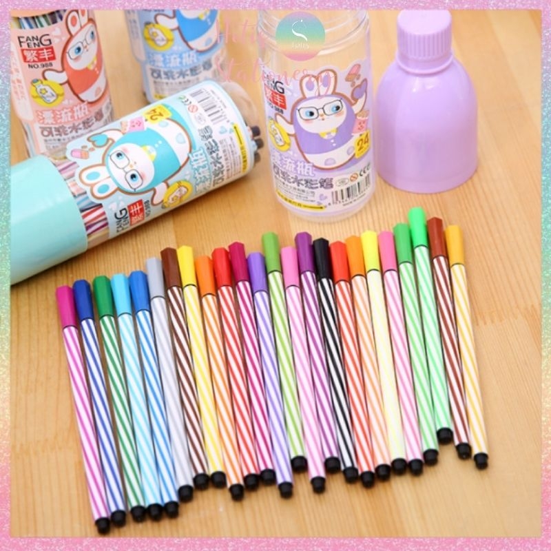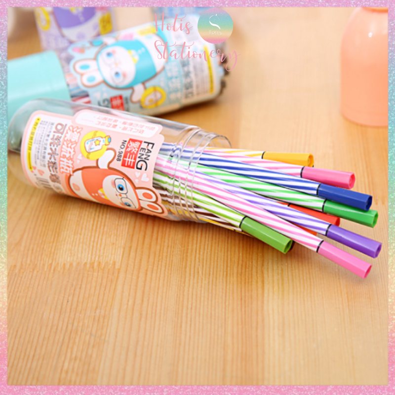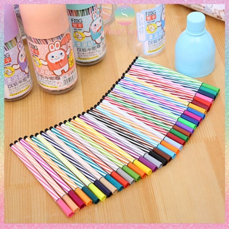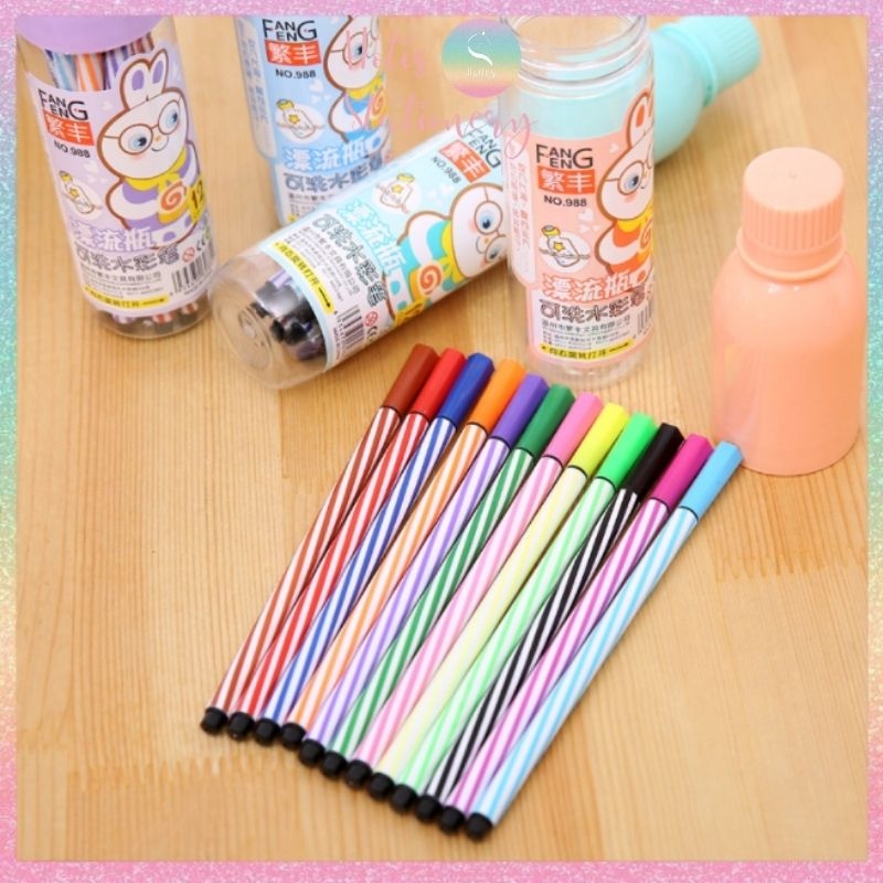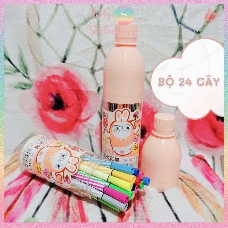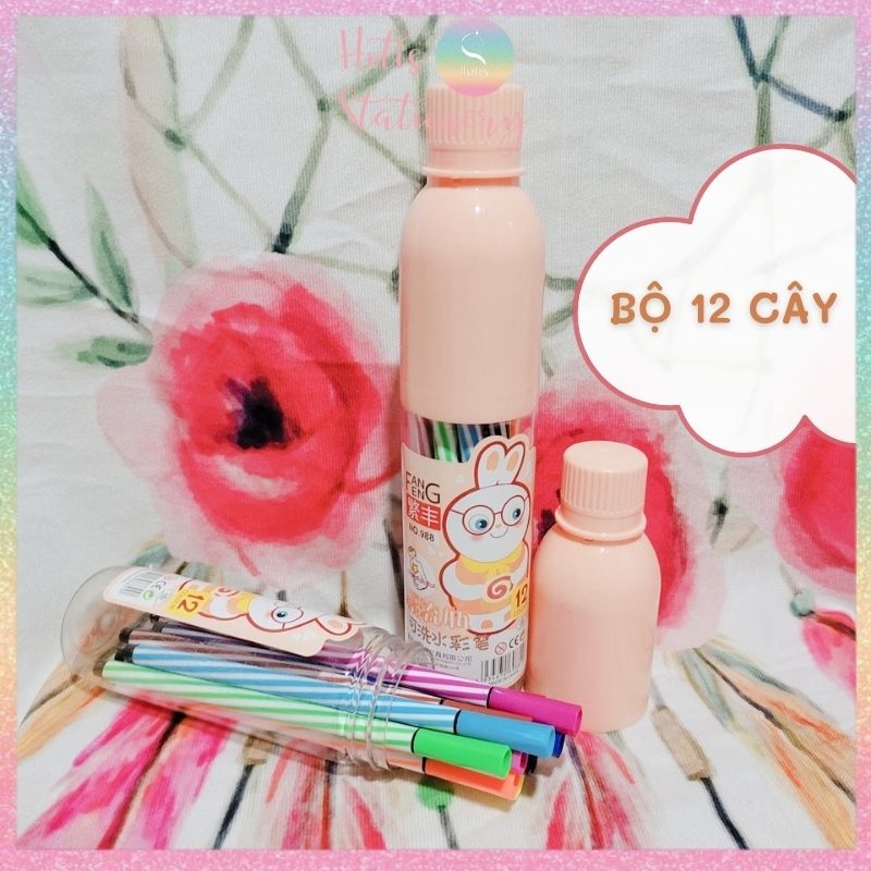 Dùng để vẽ tranh, tô màu, ghi chú Bộ bút được đựng trong chai nhựa có nắp, rất tiện cho việc sắp xếp và mang đi