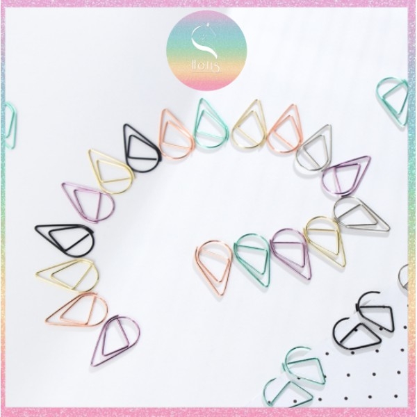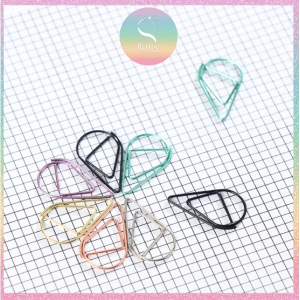 Kẹp giấy kim loại hình giọt nước - 7 màu - 3 kích cỡ - 1 cái kẹp giấy
