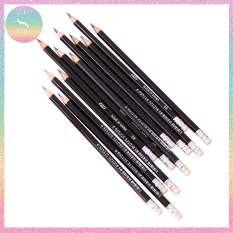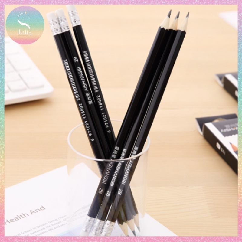 Bút chì gỗ lục giác 2B vỏ màu đen không độc hại
