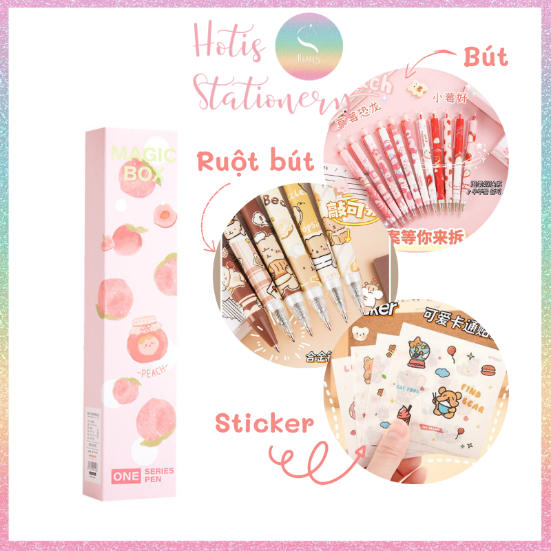 - Hộp bút bao gồm: 2 bút + 2 ruột bút cùng loại + 1 tấm sticker