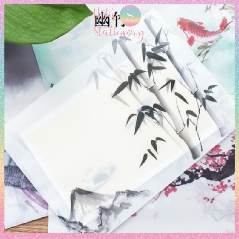[HOTIS] Phong bì, bìa thư, bì thư giấy can tranh thủy mặc, cổ phong 12.5x17.5cm - Set 5 cái