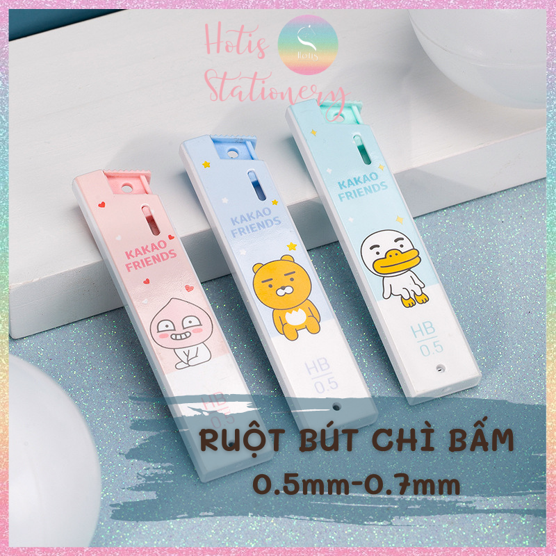 Ruột bút chì bấm kim Deli ngòi 0.5/ 0.7mm HB dạng hộp bấm Kakao Friends