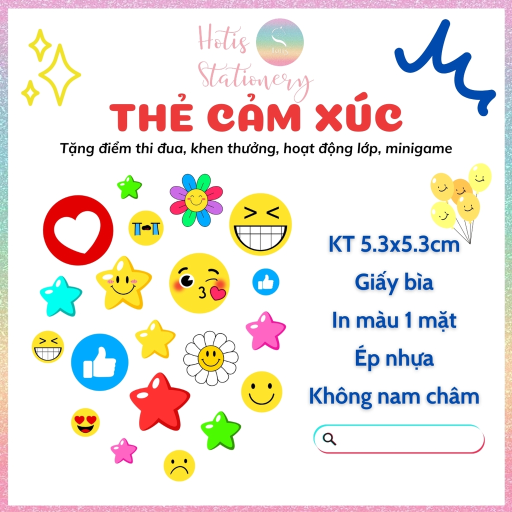 + Thẻ cảm xúc mặt khóc cười, thẻ sao vàng dùng trong hoạt động lớp giúp các bé hào hứng hơn