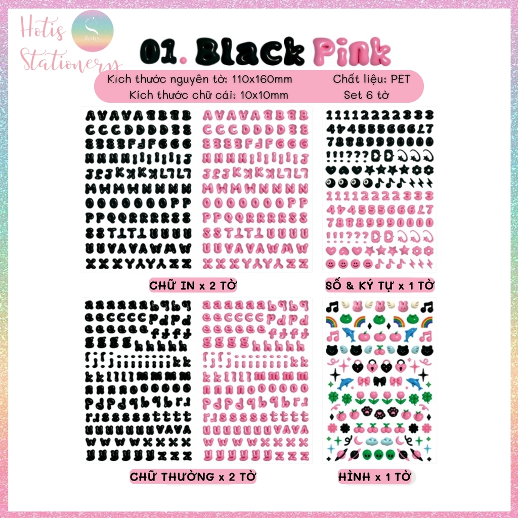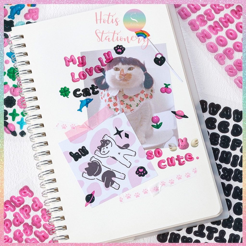 [HOTIS] Sticker chữ số màu trong suốt font cute phong cách Hàn Quốc