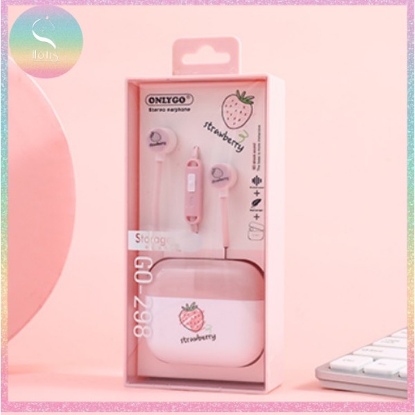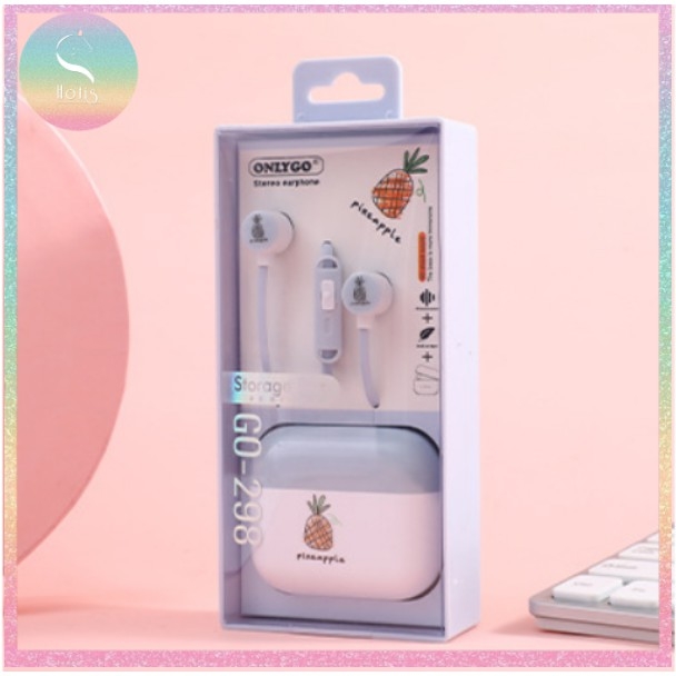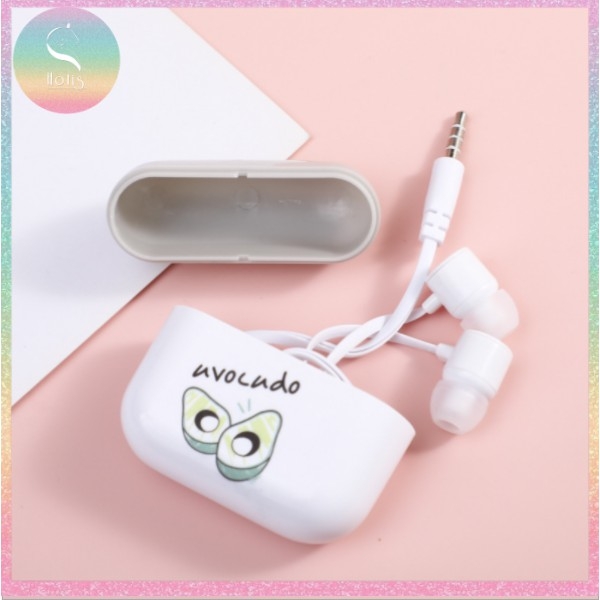[HOTIS] Tai nghe có mic kèm hộp đựng họa tiết trái cây có 4 màu
