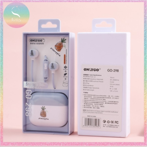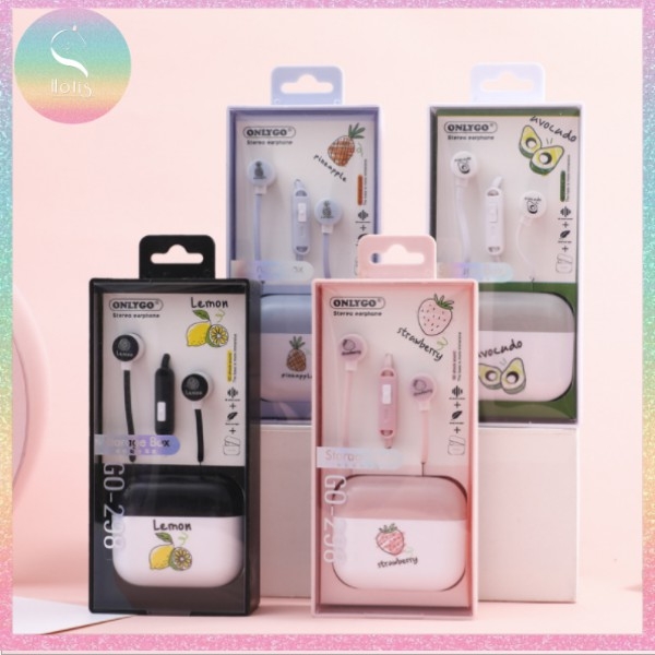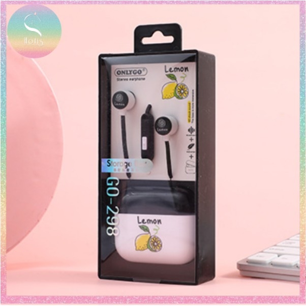 Tai nghe có mic kèm hộp đựng họa tiết trái cây có 4 màu
