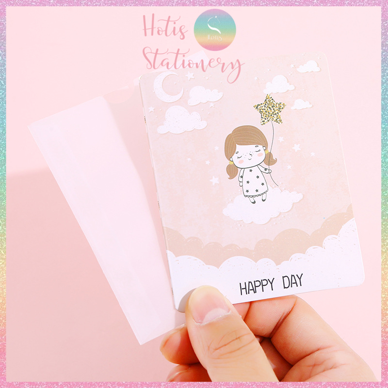 Thiệp giấy mini gấp gọn kèm bao giấy can - 10x8cm