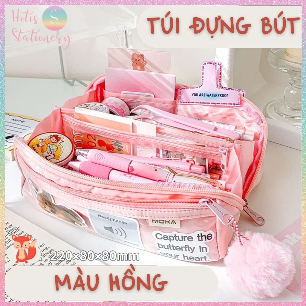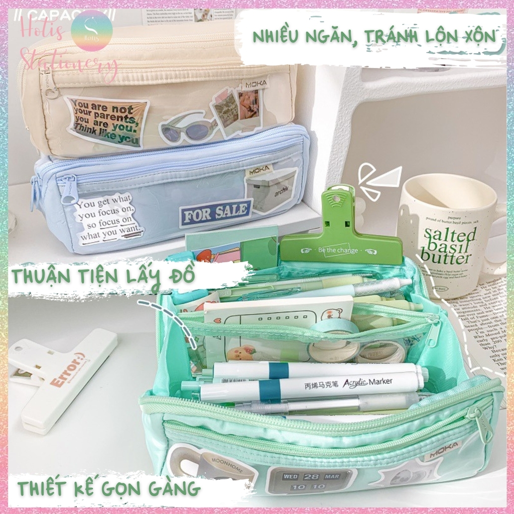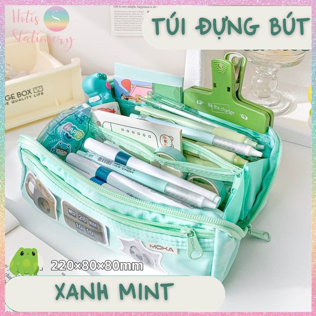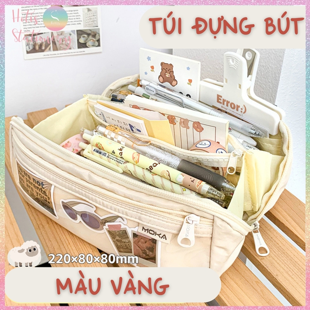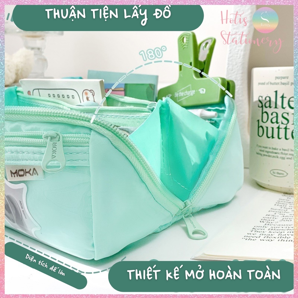 Túi đựng bút 4 ngăn Moka hộp bút sức chứa lớn, vải mịn, hợp trend, bóp viết màu sắc dễ thương