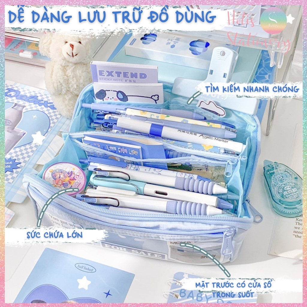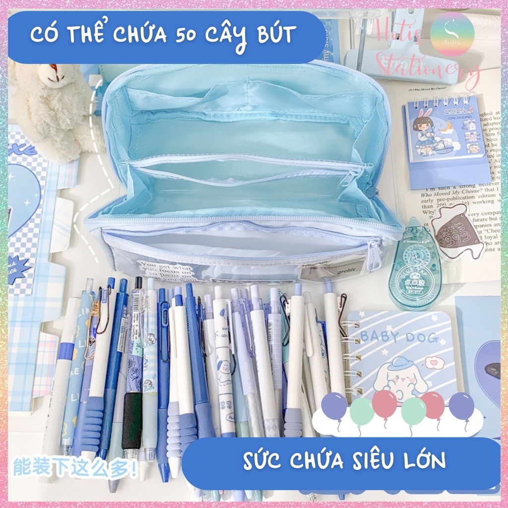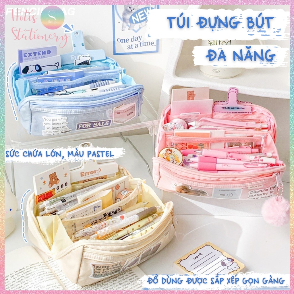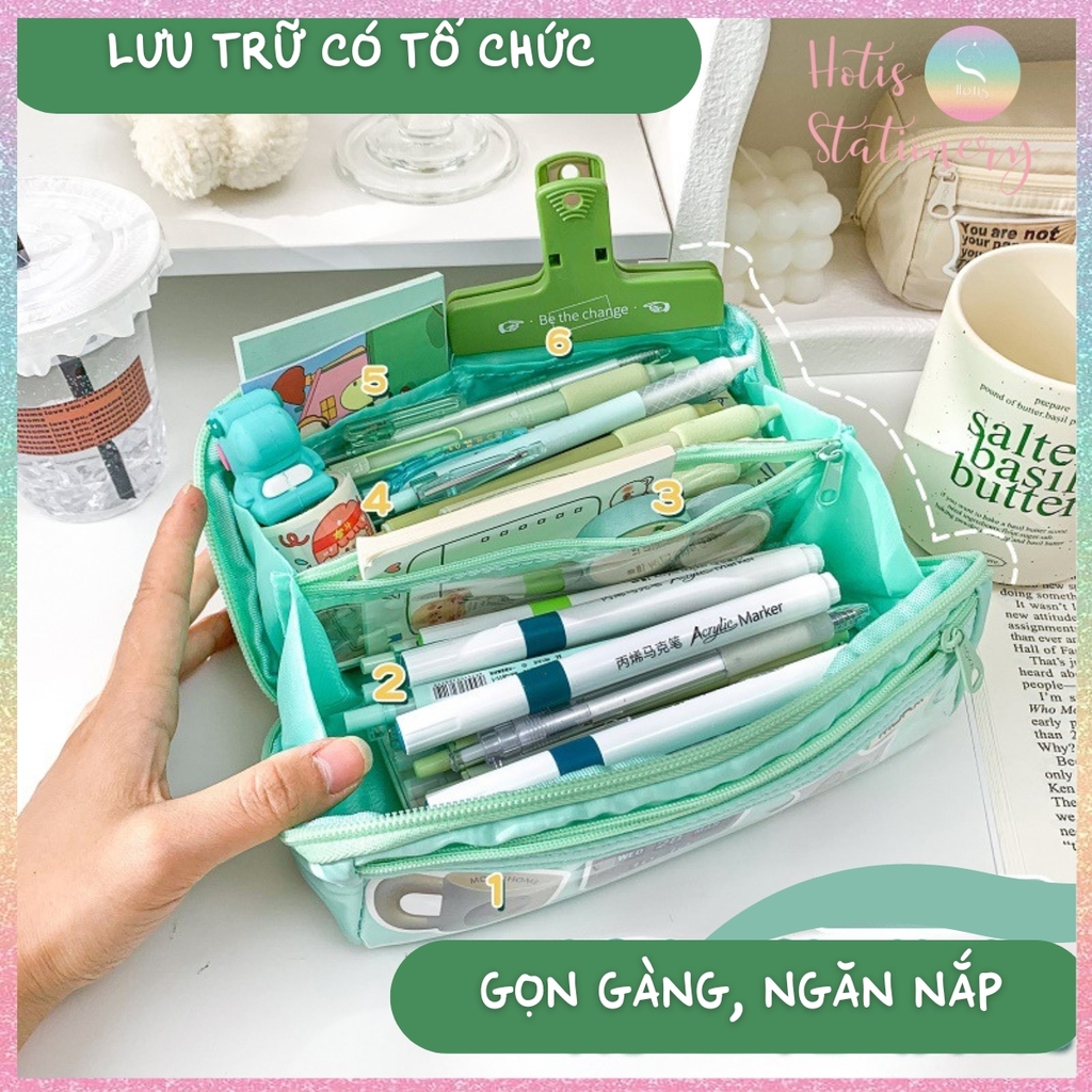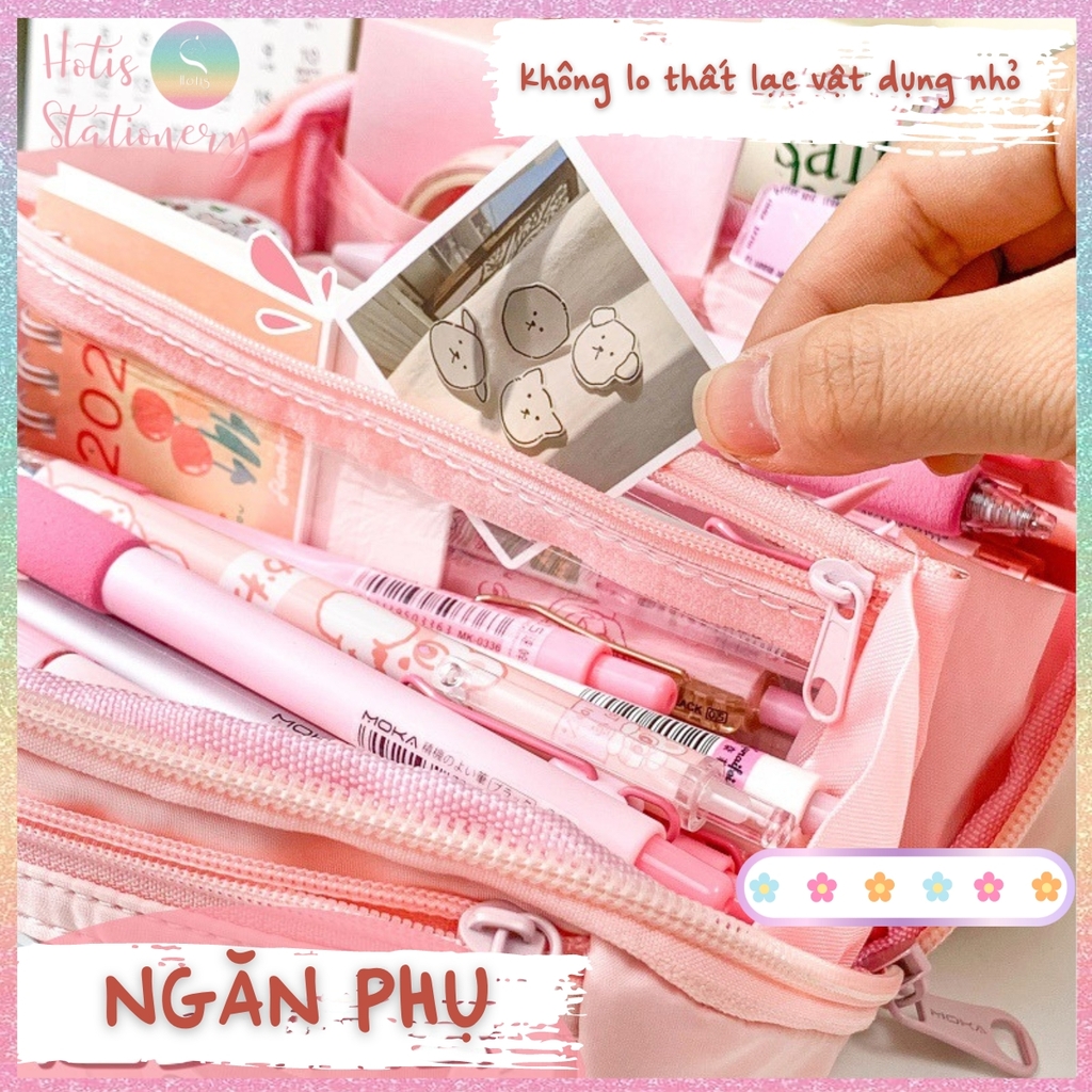 Túi đựng bút 4 ngăn Moka hộp bút sức chứa lớn, vải mịn, hợp trend, bóp viết màu sắc dễ thương
