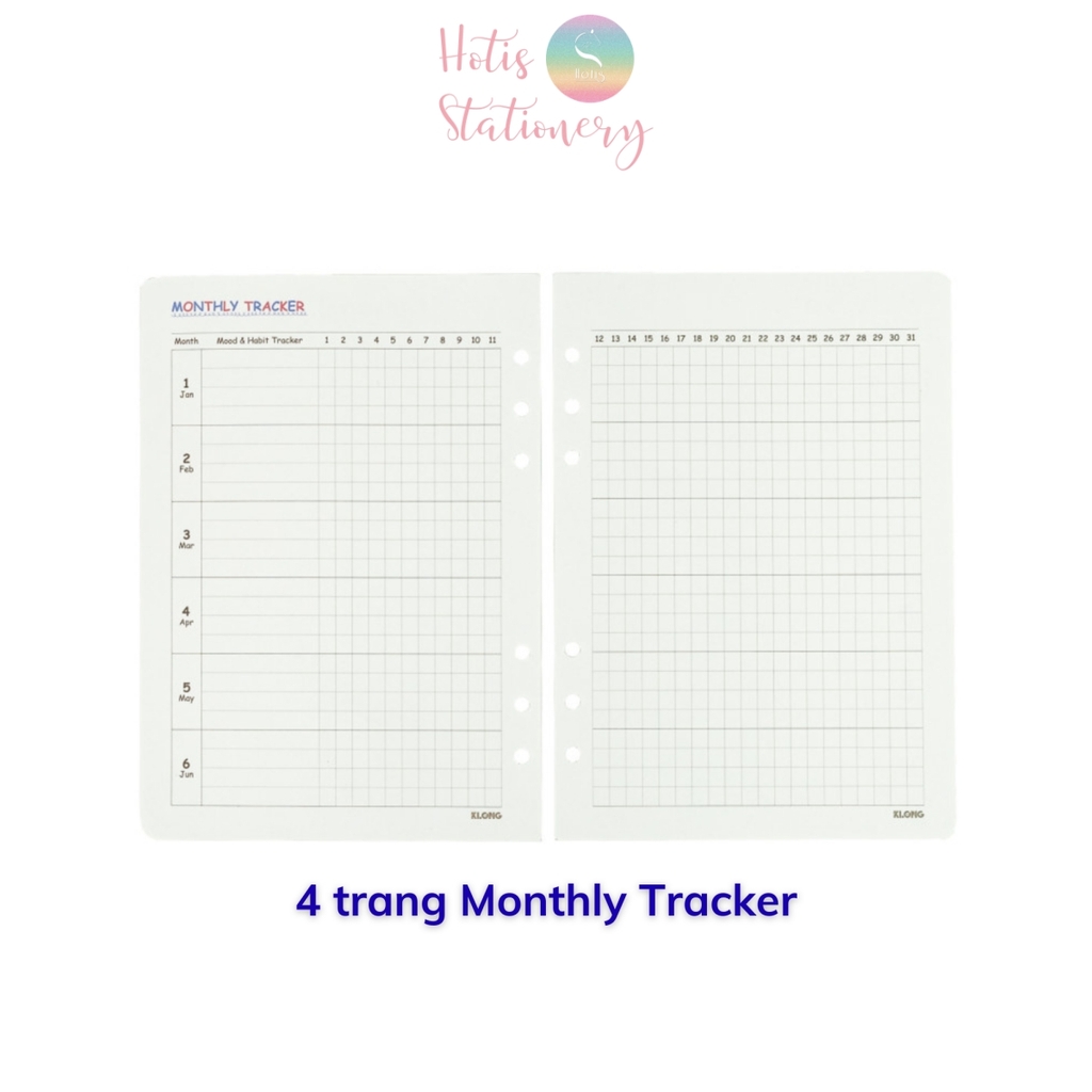+ Ruột sổ còng kế hoạch Planner Paper có lề dập sẵn 6 lỗ, dễ dàng thêm bớt vào các loại sổ còng A5 6 còng, mix & match với các loại ruột giấy A5 khác để tạo thành cuốn sổ kế hoạch ưng ý nhất.