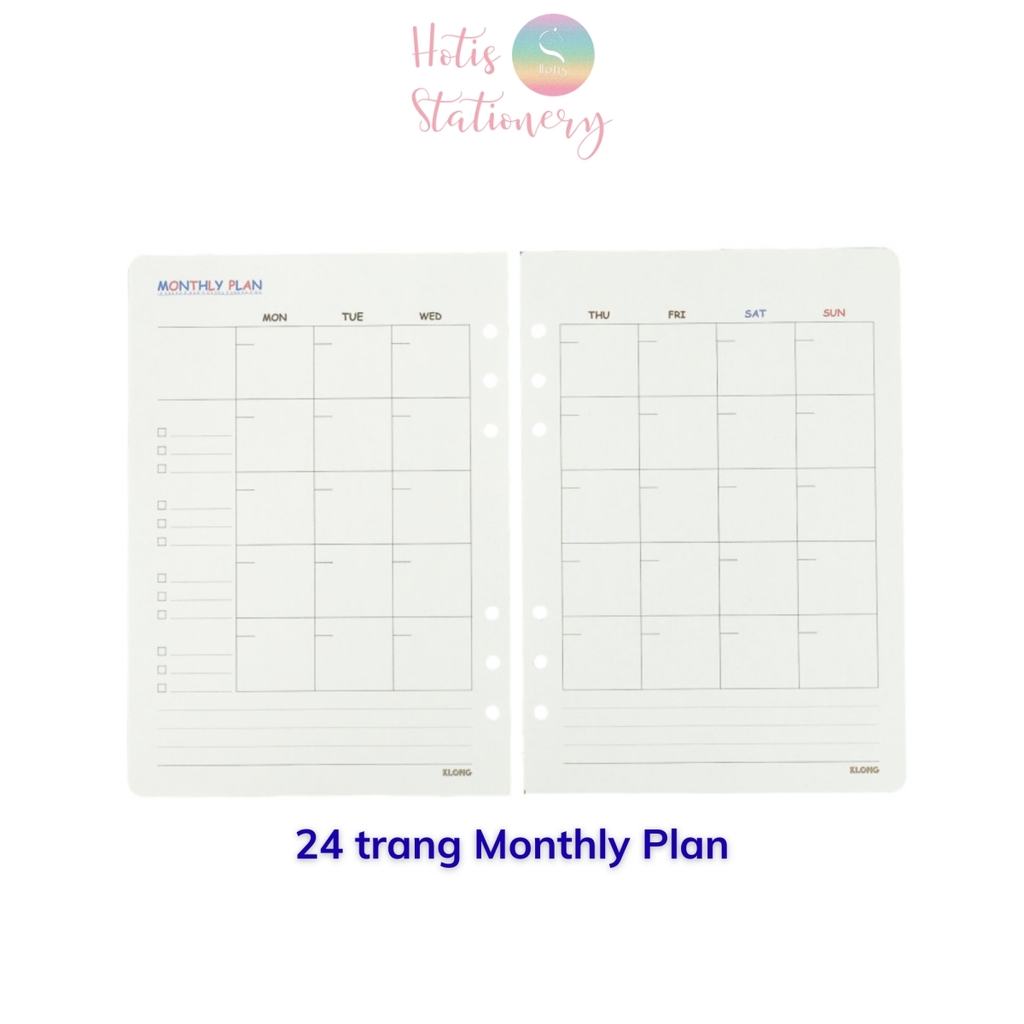 + Trang Monthly Plan (24 trang): cho phép bạn ghi chú nội dung quan trọng cho từng ngày, tích hợp thêm cột Checklist việc cần làm trong tháng và cuối trang có các dòng chú thích để ghi vắn tắt điều cần lưu ý;