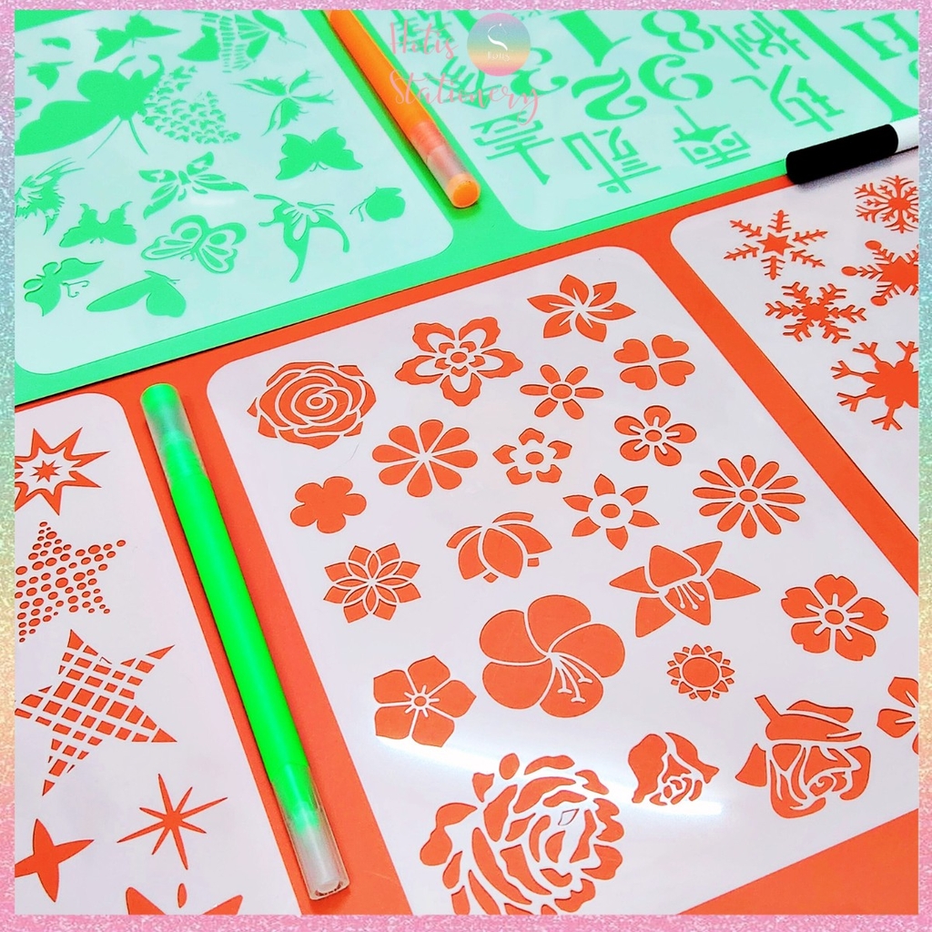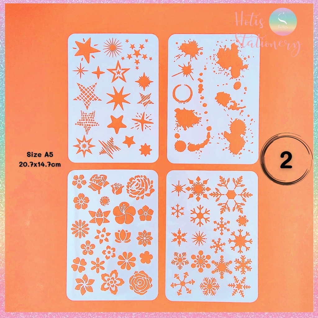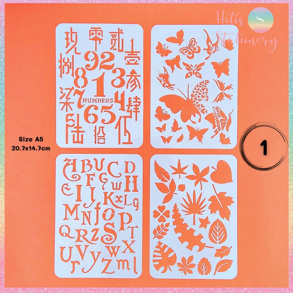Thước nhựa rỗng Hotis vẽ hình, tô màu, hoạt tiết hoạt hình dễ thương - Set 4 tấm size A5